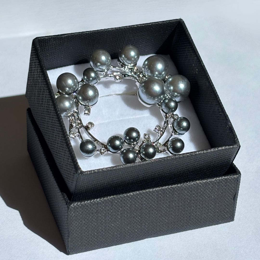 Turn heads in the arena with the celestial beauty of the Galaxy Stock Pin. Inspired by the night sky, this striking circular design features a constellation of shimmering charcoal pearls set on a radiant silver base, accented with sparkling crystals.